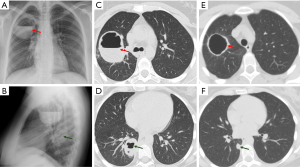 - Woodring JH, Fried AM, Chuang VP. Solitary cavities of the lung: diagnostic implications of cavity wall thickness. AJR Am J Roentgenol 1980;135:1269-71. [Crossref] [PubMed]