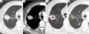 - Nin CS, de Souza VV, Alves GR, et al. Solitary lung cavities: CT findings in malignant and non-malignant disease. Clin Radiol 2016;71:1132-6. [Crossref] [PubMed]