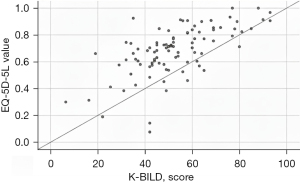 One of the objectives of our study was to compare the results of HRQL assessment using the two most commonly employed questionnaires in ILDs—EQ-5D-5L and K-BILD.