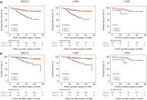 | LUAD (n=833) | LUSC (n=138) | ||||||||||