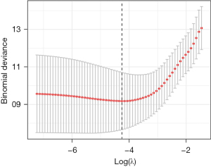 LASSO regression analysis results for prognosis of patients with newly diagnosed severe PTB