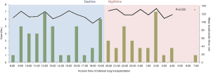 - Tanaka S, De Tymowski C, Dupuis E, et al. Is Night Surgery a Nightmare for Lung Transplantation? Transpl Int 2024;37:12816. [Crossref] [PubMed]