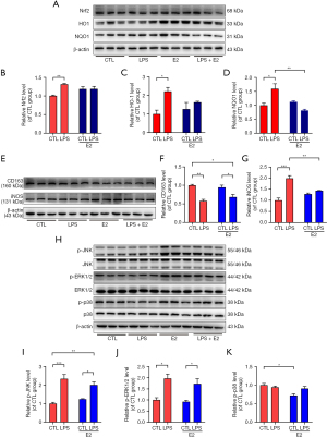 The protein expression levels of p-JNK and p-ERK1/2 in BV2 cells significantly increased following exposure to LPS (Figure 6H-6K). Treatment with E2 demonstrated a tendency to mitigate the rise in p-JNK and p-ERK1/2 expression induced by LPS. Furthermore, E2 also reduced the expression of p-p38 in BV2 cells, suggesting that E2 may inhibit the activation of the MAPK pathway triggered by LPS.