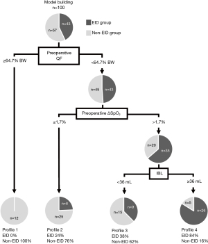 We aimed to examine combinations of predictors for EID in patients who underwent lung resection using decision-tree analysis. We present this article in accordance with the STROBE reporting checklist (available at https://jtd.amegroups.com/article/view/10.21037/jtd-2025-1046/rc).