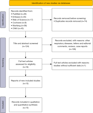 (I) Reviews, letters, editorial comments, case reports, animal experiments, conference abstracts, unpublished articles, and experience summary; and (II) other respiratory diseases (e.g., asthma, bronchiectasis, pulmonary fibrosis, lung cancer) or severe liver, kidney, and heart diseases.