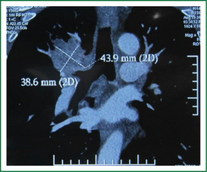 The patient was a 66-year-old male, who was admitted into our hospital due to coughing and blood-tainted sputum for over a month. He had a history of hypertension for 4 years, and a long history of heavy smoking, with a smoking index over 1,000 pack years. A chest CT scan, performed in other hospital on 10 August 2012, suggested a right upper lobe mass. A fibrous bronchoscopy, performed in our hospital on August 13, 2013, showed a neoplasm at the opening of the right upper lobe bronchus, blocking part of the bronchus. A biopsy with pathology suggested squamous carcinoma. A chest CT scan with enhancement, which was performed in our hospital on August 19, 2013, showed a right upper lobe mass considered as a central lung cancer, without visible lymph nodes enlargement in the mediastinum (Figure 1). The patient’s preoperative routine examinations did not reveal significant surgical contraindication, and his lung function was basically within the normal range.