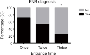 We realize that two factors limited our study: first, our overall actual number of cases was limited; second, the specific groups such as automated implantable cardioverter-defibrillator patients, who also had successful guidance by ENB (17), were excluded. We will continue to monitor the efficiency and safety of ENB in the future.