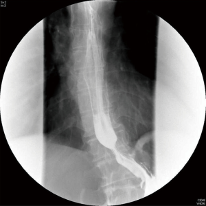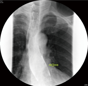 A 63-year-old Chinese man was admitted to our hospital because of dysphagia, belching and retrosternal pain for over half a year. He has been hypertensive for 5 years and has been on antihypertensive medication for that time. His family history was unremarkable. Results of his physical and systemic examination were normal.