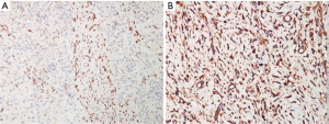 Additionally, immunohistochemical staining helps to distinguish neurogenic from myogenic or other submucosal tumors. In our current report, the tumor comprised of fibrillary collagen and spindle cells organized in whorls, and it was positive for PGP 9.5 and Vimentin, but negative for SMA, CD34, CD117, Desmin, S-100, NSE, EMA.