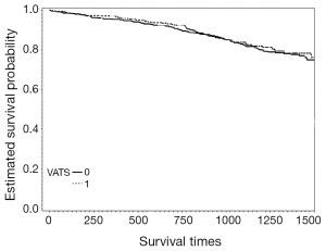 To our knowledge, the cost-effectiveness (regarding cost per life year saved) of VATS has not been reported in the literature except our previous preliminary report (10). Therefore, the aim of our study is to compare the cost and effectiveness of VATS vs. conventional surgery (CS) for clinical stage I NSCLC via this updated population-based propensity score (PS) matched analysis.
