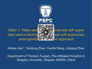 - Jiao W, Zhao Y, Wang X, et al. Video-assisted thoracoscopic left upper lobe sleeve lobectomy combined with pulmonary arterioplasty via two-port approach. Asvide 2014;1:360. Available online: http://www.asvide.com/articles/394