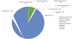 Lung cancer patients often present with pneumonia which remains an important cause of morbidity and mortality during the disease course (6). The pathogenesis of infection is multi-factorial and is influenced by the underlying disease, co-morbidities and iatrogenic immunosuppression. In lung cancer this can range from infections resulting from tumour obstruction of the airways to infective exacerbations of chronic obstructive pulmonary disease (COPD), to opportunistic infections due to immunosuppression (6). The frequency of respiratory infection in UHAs in the existing literature, is between 21.9% and 49% (4,7-9). Studies examining this are largely historical, variable in sample size and may be difficult to extrapolate from given the changes in the epidemiology and treatment of lung cancer. A retrospective study characterising lung cancer patients in the Netherlands highlighted the potential impact of respiratory infection on a nationwide level (10). The burden of community acquired pneumonia is high in cancer in general, with variations by cancer subtype and particularly high rates in lung cancer (11).