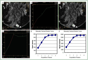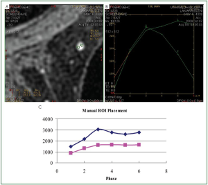 enhancement kinetics as persistent (plateau) in 45% of lesions