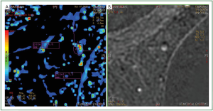partial volume effect or inclusion of necrotic tumoral areas, the