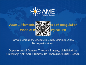 - Shibano T, Endo S, Otani S, et al. Hemostasis using the soft coagulation mode of the electrosurgical unit. Asvide 2015;2:084. Available online: http://www.asvide.com/articles/677